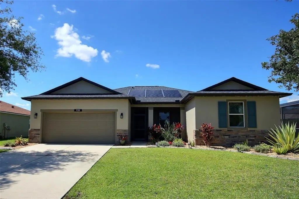 Under contract-accepting backup offers. One or more photo(s) has been virtually staged. Welcome to this beautifully maintained, move-in ready 3-bedroom, 2-bathroom home with a 2-car garage, located in a vibrant and rapidly growing area near Virgil Mills Elementary and Buffalo Creek Middle School. Enjoy energy efficiency and long-term savings with a new state-of-the-art GAF Energy Solar Roof System installed in 2024 (this system is fully paid for), complete with a transferable warranty covering both the solar and regular shingles. Inside, the home features fresh interior and exterior paint, an open-concept floor plan, and durable tile and plank vinyl flooring throughout. Step outside to your private oasis with a heated pool with pool cage, all set within a fully fenced yard that boasts mature landscaping, landscape curbing, and tranquil water views. A screened-in front porch adds to the home’s charm and functionality. The property is conveniently located near Buffalo Creek Park, offering a wide range of activities for both youth and adults. Enjoy peace of mind with low HOA fees that include water for irrigation and **no CDD fees**. This is truly an exceptional area to live in. Within 30–40 minutes, you can have your toes in the powdery white sand of some of the world's best beaches or reach vibrant cities such as St. Petersburg, Tampa, and Sarasota. With such convenient access to natural beauty and urban excitement, this location offers the best of both worlds. The Moccasin Wallow and I-75 interchange is Manatee County's newest major growth center, with millions of square feet of retail space approved, a brand-new BayCare hospital, and new hotels, restaurants, and shopping on the horizon. This move-in ready home is perfect for the next family to enjoy the beautiful Florida lifestyle. **Don't miss out—schedule your private showing today and make this dream home yours!**