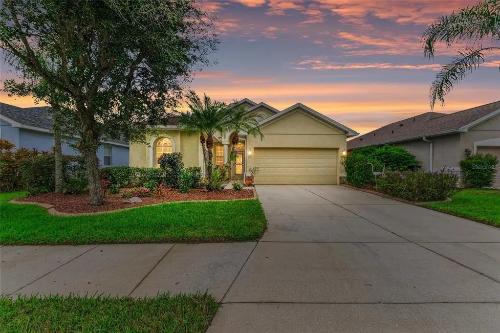 Under contract-accepting backup offers. This inviting three-bedroom, two-bath home welcomes you with a stunning water view and a bright entry framed by an etched-glass front door. Inside, the open floor plan flows effortlessly from the spacious living area to a beautifully appointed kitchen with granite countertops, a stylish backsplash, stainless-steel appliances, and a breakfast bar. A cheerful dining nook overlooks the pool and lake, while the formal dining area offers an elegant space for entertaining. The family room is filled with natural light from large windows that capture serene views of the pool and lake. The primary suite features a tray ceiling, expansive windows, a walk-in closet plus an additional closet, and a spa-like bath with a garden tub and separate walk-in shower. Step outside to a private backyard retreat, where you can swim, relax, and watch the sunset over the lake. Residents of this desirable community enjoy access to a pool, clubhouse, and fitness center, all just minutes from Ellenton Premium Outlets, local grocery stores, and convenient I-75 and I-275 connections. *Pool Cage 2025. *Roof 2024.