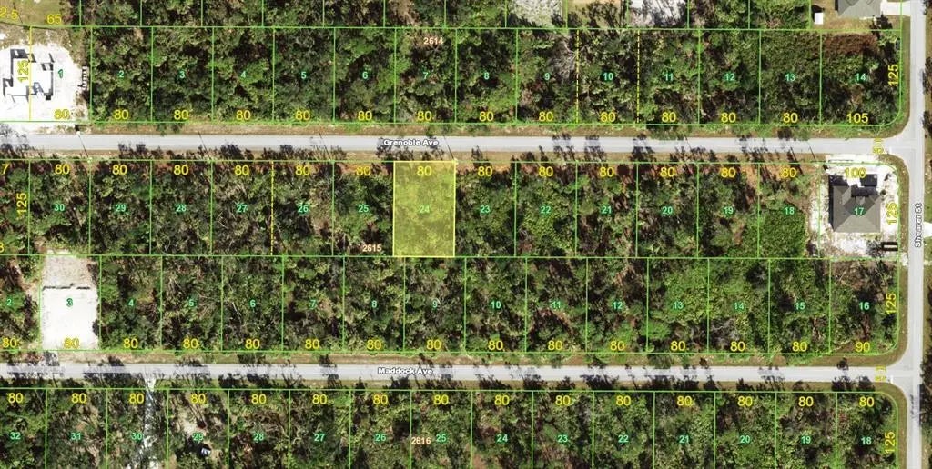 Discover the potential of this 0.23-acre vacant lot at 14435 Grenoble Avenue in Port Charlotte, Florida. This buildable parcel features dimensions of 80x125 feet, providing ample space for your custom home design. The property is zoned RSF3.5, suitable for single-family residential development. Enjoy the convenience of nearby amenities, including shopping centers, restaurants, and recreational facilities, all within a short drive. The lot is located in Flood Zone X500, indicating minimal flood risk, and requires a septic system and well installation for utilities. Embrace the opportunity to create your ideal living space in a growing community that offers a blend of suburban tranquility and easy access to urban conveniences.
