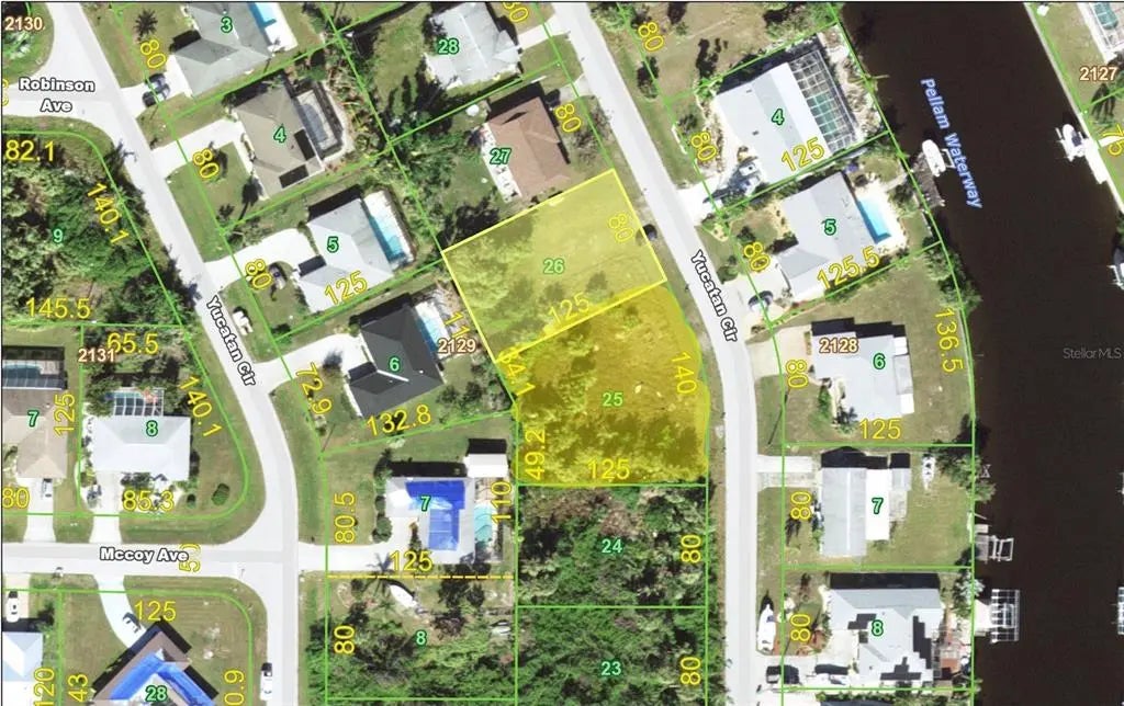 BUILD A SPACIOUS POOL HOME on over a half acre of land in PORT CHARLOTTE. 2 Adjacent lots are included in this sale totaling 23,966 SF / .55 acres. Parcel ID #s : 402229108019 (lot 26) and 402229108020 (lot 25)....Lot 26 dimensions (4041 Yucatan Circle) are 80x125. Lot 25 dimensions (4049 Yucatan Circle) are 140x125x83x125. Combined dimensions : 220x125x163x125. NO HOA. County water is available. Located in a quiet neighborhood minutes from shopping, dining, medical care, entertainment, Charlotte Sports Park ( spring training home to the Tampa Bay Rays ). 5 minutes to the Port Charlotte Beach Complex, 15 minutes to historic downtown Punta Gorda, easy drive to world class fishing on Boca Grande and gorgeous Gulf beaches.