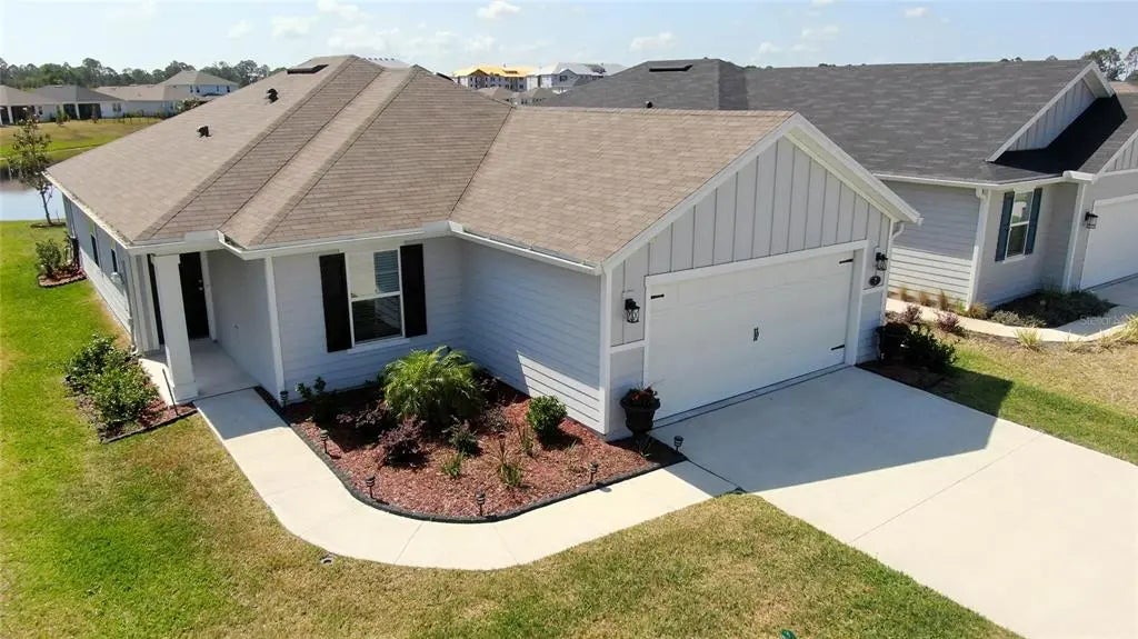 Modern Lakefront Living in Whiteview Village a GATED COMMUNITY – Built in 2023 Discover this beautifully upgraded 3 bedroom, 2 bath home nestled in the newly developed KB Homes Whiteview Village, offering a tranquil lake view and exceptional value with low HOA fees of just $285 a quarter. This meticulously maintained home blends style, comfort, and function. Step inside to find a bright, open layout featuring a spacious living room and a designer kitchen equipped with a gas stove, pull-out drawers in the cabinetry, and adult-height toilets for enhanced comfort. The primary bedroom is a relaxing retreat with serene lake views. Additional upgrades include premium ceiling fans, gutters, and a solar-powered attic fan for energy efficiency. Enjoy the outdoors year-round from the extended open lanai, perfect for entertaining or relaxing. The oversized 2-car garage provides ample storage space, and outdoor enthusiasts will love the ability to launch a kayak from the community launch enjoy fishing or paddling on the scenic pond/lake. This is lakeside Florida living at its best – all in a quiet, conveniently located community close to schools, shopping, and parks.