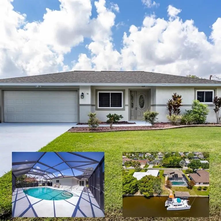Charming 3/2/2 solar-heated pool home located on a quiet cul-de-sac situated on a saltwater canal in the desirable sailboat section of Palm Coast. Open floor plan. Attractive laminate flooring in the living, dining, kitchen & spacious eat-in kitchen area. Fresh paint inside & out, including the walkway & driveway. AC 2021 Roof & skylights replaced in 2019. Windows 2014. Pool pump replaced in 2025. Aluminum pool enclosure replaced in 2017. A lovely paver walkway takes you down to the boathouse & dock with composite decking, which was replaced in 2022. Electricity (50amp), a separate circuit & water are located at the dock. Boat lift. An 8-minute boat ride to the Intracoastal. Covered lanai area. Extended patio. No homeowner's association. NO fixed bridges.