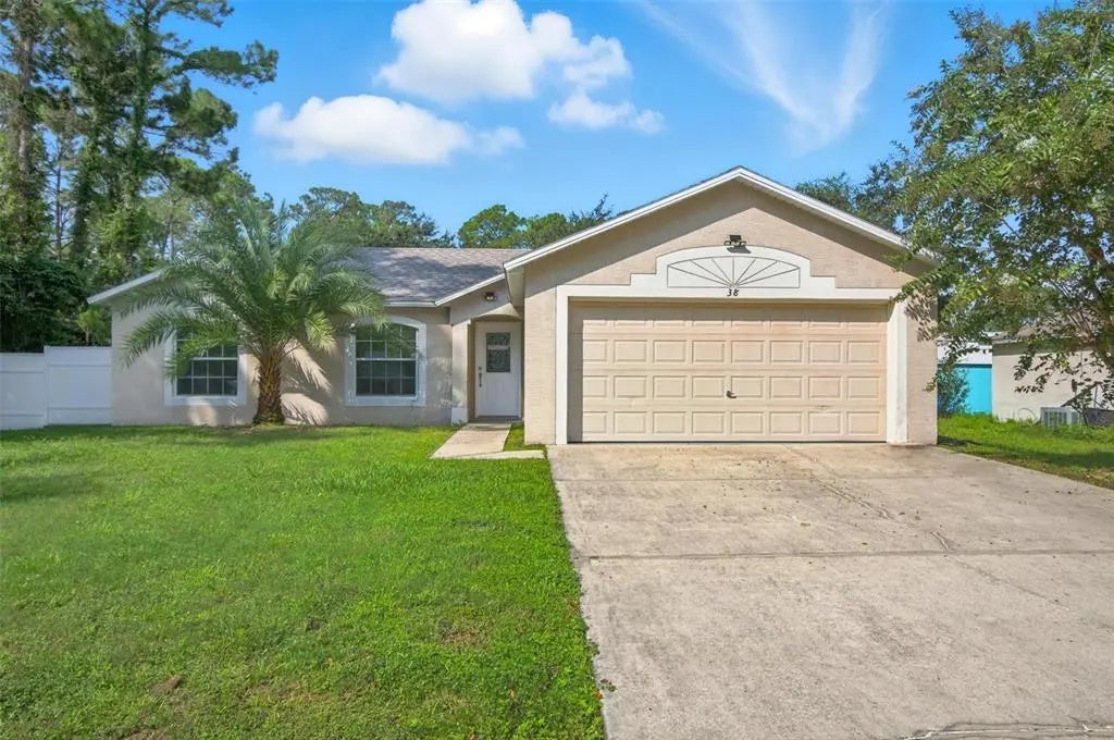 Welcome to your serene retreat in Palm Coast, FL! This stunning 4-bedroom split plan home blends comfort, elegance, and Florida charm. Bathed in natural light, the open-concept layout seamlessly connects the living, dining, and kitchen areas, perfect for everyday living and entertaining. Step outside to the large cement patio, this slab has been permitted, ready for expansion to enlarge your home, where you can savor morning coffee or evening stargazing. New roof in 2023 and AC in 2024. The luxurious master suite offers a peaceful escape with ample space, a private en-suite bath. Three versatile bedrooms provide comfort for family, guests, or a personalized sanctuary. Conveniently located near Palm Coast’s shopping, dining, parks, and pristine beaches, this home invites you to embrace the ultimate Florida lifestyle. Don’t miss your chance to own this exquisite haven—schedule a private tour today and discover serenity, sophistication, and endless possibilities!