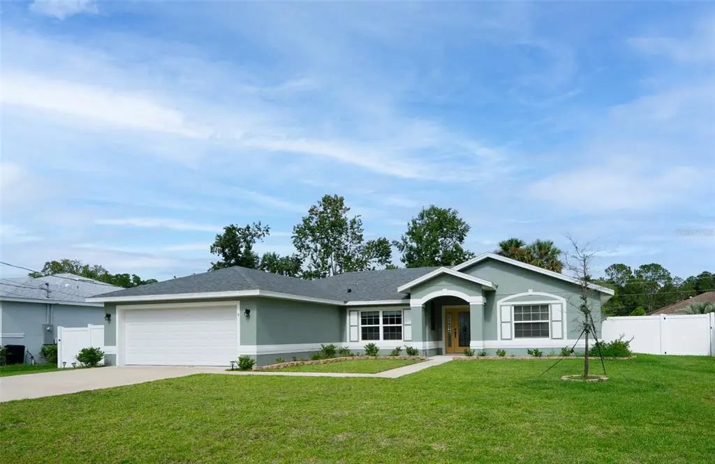 Beautiful Like New, 2024 year built Seagate Bryce floor plan located in the heart of Palm Coast. This nicely appointed concrete block home offers a popular open floor plan with a pleasing color palette, vaulted ceilings and tile in the main areas. The kitchen is nicely appointed with 42 inch cabinets with crown molding, granite countertops, tiled backsplash and stainless steel appliances. Large owners suite with tray ceiling and large bathroom with tiled shower, granite counters and double sinks. Fully fenced yard with irrigation system on a well make this home a must see!