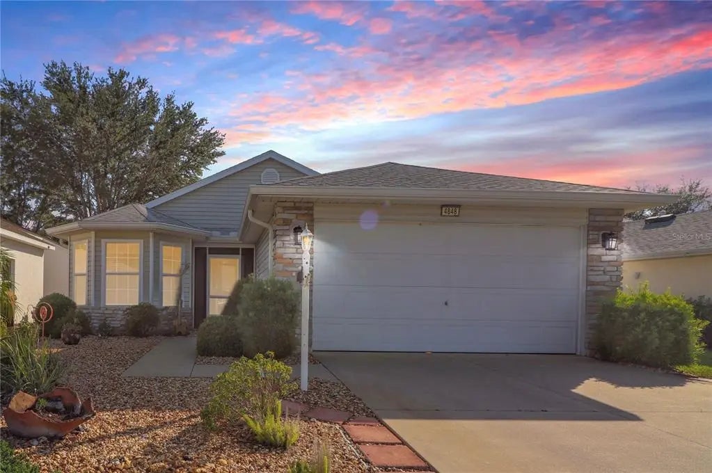 One or more photo(s) has been virtually staged. Imagine low-maintenance living in this beautifully updated Carlisle model, 1,544 sq. ft. plus your Florida room! Enjoy stunning golf views of the 16th tee and fairway, complemented by native Florida landscaping and a transferrable termite bond. With a newer roof (2019), updated HVAC (2024) and water heater (2024), this home offers peace of mind. The Florida room features upgraded acrylic windows and sun shades, promising delightful and comfortable afternoons. The spacious kitchen boasts modern appliances and wood cabinets. This home has an open rear patio, perfect for enjoying the views. Inside, you'll find ample storage and closet space, updated flooring and lighting, granite kitchen countertops, and abundant natural light enhanced by skylights. Kitchen has stainless appliances, a charming breakfast nook, custom blinds, garbage disposal, wood cabinets, and a pantry. Like-new laundry appliances also convey. You'll find that French doors, a surge protector, a newly painted garage floor, and darkening shades in the primary suite cover many of your essential needs. Outside, discover the ease of a nearly no-maintenance exterior. The captivating curb appeal sets the tone for the property, guiding you inside where stunning golf course views will instantly captivate you. Plus, benefit from a gated community with resort-style amenities and included cable/internet. Easy access to the turnpike and Orlando attractions.