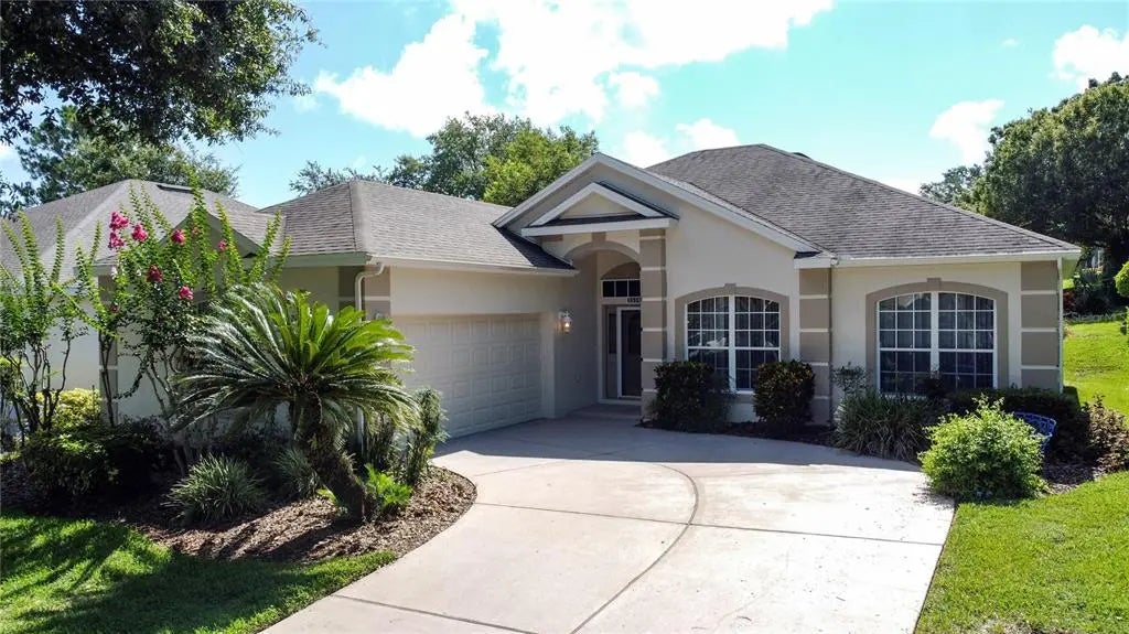 Very popular St Laurent model on the golf course in 55+ gated Kings Ridge community. Large back screen enclosure with an above ground heated spa. Home has 1825 SF with 3 BD/ 2 BA and an oversized 2 car garage. Crown molding throughout most of the home. There is 16" tile in the foyer, family room, kitchen & breakfast nook areas. Laminate in the Primary bedroom & 2nd bedroom. The kitchen has granite counter tops, stainless steel sink and upgraded cabinet fronts. New back lanai screens and aluminum panels in 2022. New roof in Nov 2014. HVAC change out to a 4 ton unit in Oct 2012 and newer heater. Buyer will get a full year Old Republic Home Warranty upon closing. Also home has a transferrable Stark termite bond that is renewable every year. The Kitchen and Family rooms valences do not remain. There is a $500 credit from the Seller toward a new dishwasher. There is a Smart Sensor system thru Turner Pest that is in the attic to detect rodents and attic has been professionally closed off. This was for preventative measures only. Kings Ridge is a 55 Plus gated golf community located in the rolling hills of Clermont, FL. Enjoy the Royal life style in the multi-million $ clubhouse with 3 heated pools, spas, tennis & pickle ball courts, billiards, shuffle board, shows, Bingo, cards and clubs galore. The monthly maintenance fees include: lawn maintenance including trimming of shrubs, care of irrigation system & irrigation water, internet, TV & home phone thru Fibernow/Opticaltel , maintenance of roads and outside painting of home every 7 years. Take your golf cart to the Kings Ridge Plaza where you can do your grocery shopping, banking or dine out. Approximately 30 minutes to Disney Parks or Universal Studios.
