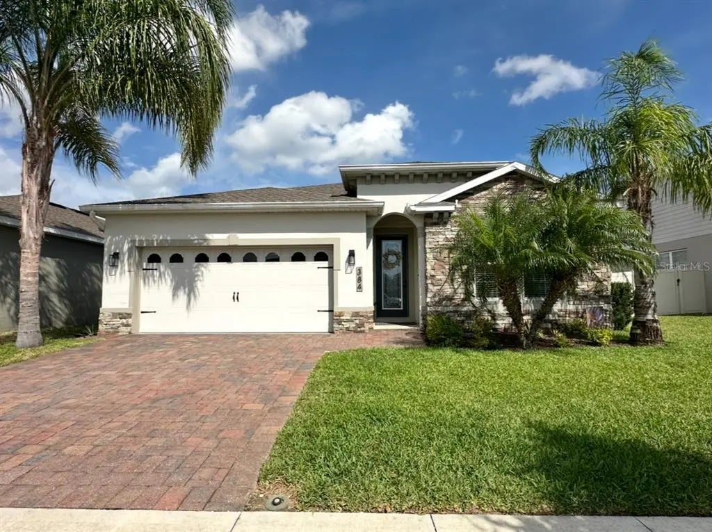 Under contract-accepting backup offers. Welcome to this beautifully upgraded 4-bedroom, 3-bathroom home, offering a spacious open floor plan designed for modern living. This move-in-ready property features a range of impressive upgrades that combine style and functionality. Enjoy the energy efficiency of a water softener/water filtration system and PAID OFF solar panels, which help lower utility costs with an average monthly electric bill of around $50!! The extended lanai is perfect for outdoor relaxation or entertaining, and the home boasts two walk-in showers and a tub-shower combo in the bathrooms for added convenience. With 9-foot ceilings throughout, the home feels open and airy, and the durable LVP flooring ensures easy maintenance. Upgraded tile in key areas adds a touch of elegance, and the fully equipped kitchen comes with essential appliances, including a fridge, washer, and dryer. Additional storage space is available in the garage with overhead racks, while the sleek epoxy garage floor ensures a clean and easy-to-maintain surface. The home also features an Ecobee thermostat, offering smart home temperature control, and residents can enjoy the nearby community pool on warm Florida days. For an added bonus, HOA fees are paid in full for the year! Located just 15 minutes from Disney and 30 minutes from Universal Studios, this property offers easy access to world-renowned theme parks while still providing a peaceful retreat. The community also hosts regular food truck nights, offering residents the chance to enjoy delicious meals and socialize with neighbors. The additional home in the backyard provides excellent flexibility for multi-generational living or offers a great investment opportunity. See MLS # G5099049. Don’t miss out on this exceptional property—schedule a showing today!