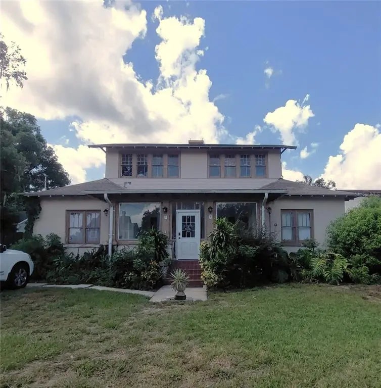 Under contract-accepting backup offers. This property is a short walk to downtown Eustis within the Eustis Historic District. Four bedroom, two full bath home built in 1919. Primary bedroom, bathroom and second bedroom on the first floor, while the two other bedrooms and a bathroom are upstairs. Large enclosed front porch with lots of windows. Nice foyer/study with a fireplace as you enter the home. Dining room with two entries. Large living room area and an additional stepdown space for lots of plants, hobbies or game room. Half basement with crawlspace. Utility/mud room has the gas clothes washer and dryer that connects to both the additional living area and kitchen. Current owner has completed some interior work to include replacing the plumbing pipe, kitchen, basement, downstairs bathroom and upstairs bedrooms, and is giving the opportunity for new owner(s) to put their interior decorating skills to practical use and bring this 20th century home back to its glory. Privacy fence installed with driveway partially enclosed. Detached garage/hobby building located at the rear of the property. Home Warranty through American Home Shield provided by the seller.