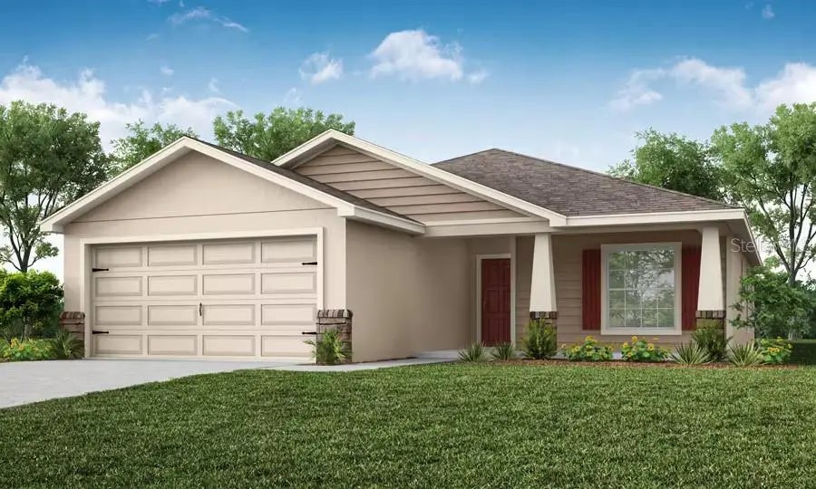 Under contract-accepting backup offers. Under Construction. New construction home with 1,545 square feet on one-story including 3 bedrooms, 2 baths, and an open living area. Enjoy an open kitchen with granite countertops, Samsung stainless steel appliances, a walk-in pantry, and a spacious island, fully open to the dining café and gathering room. The living area, laundry room, and baths include luxury wood vinyl plank flooring, with stain-resistant carpet in the bedrooms. Your owner's suite is complete with a walk-in wardrobe and a private en-suite bath with dual vanities, a tiled shower, and a closeted toilet. Plus, enjoy a covered lanai, 2-car garage, custom-fit window blinds, architectural shingles, energy-efficient insulation and windows, and a full builder warranty. "Please note, virtual tour/photos showcases the home layout; colors and design options in actual home for sale may differ. Furnishings and décor do not convey.”