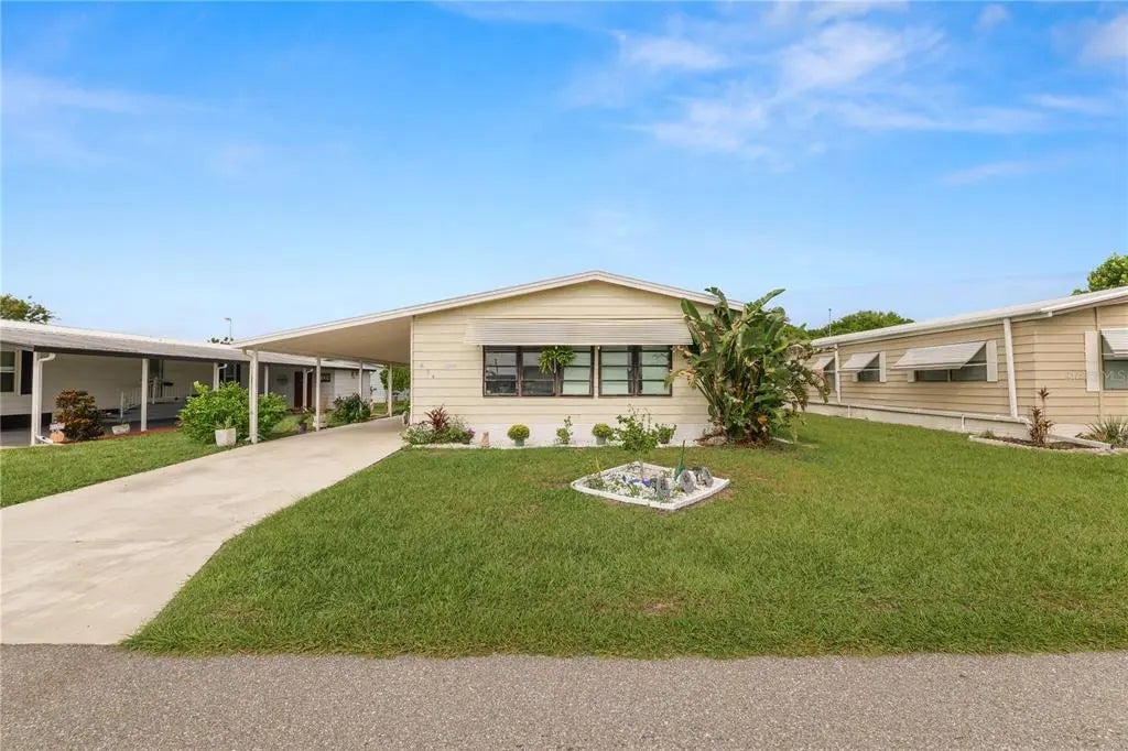Welcome to your 2 bedroom 2 bathroom home located in the vibrant 55+ community of Foxwood Lake Estates. This home features a spacious living room with built-ins. The kitchen/dining room offers plenty of space for entertaining friends and family. Laminate flooring runs throughout the home, while the entertaining Florida room is carpeted. The primary bedroom is spacious and offers two closets along with an en-suite with a single sink vanity and walk in shower. The 2nd bedroom offers a walk-in closet and generous space and natural lighting. The laundry hook ups are located in the outdoor, oversized storage room. The community offers a clubhouse, pool, shuffleboard courts and many more amenities! Schedule your private showing today!