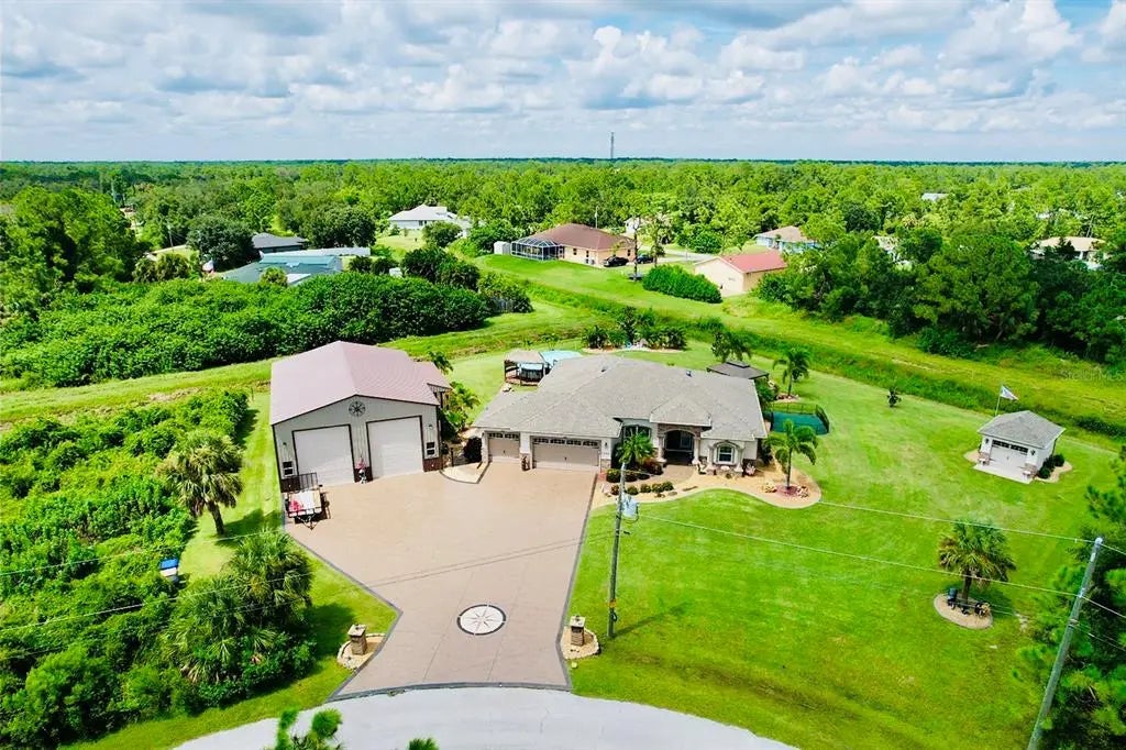 Meticulously Maintained Home and Yard on .79 Acres!!! These homeowners did an amazing job at taking care of this piece of paradise. Starting with the exterior... There is a 36x50 Metal Outbuilding with a Loft. Able to contain a Class A or Fifth Wheel RV along with other vehicles/boats! Doors on building are 14ft high and 12ft wide!! 3 Car Garage doors to the main house are 8ft. A/C has the blue light system/7 years new, and there is a a wall unit in Master bedroom thats 1 yr. old for those who like it really cold! Whole house hurricane shutters! The land is high and dry sitting at 24ft above flood level. Whole house Generac Generator is 22KW! Gorgeous Park like setting! Shed for storage on the North side of property! 8 Zone Sprinkler System, approx. 80 heads. Talk about a calming atmosphere while relaxing in the Heated Swimming Pool or Spa! Outdoor heated Shower! There is also an Outdoor Kitchen that makes it great for Entertaining. Owners are leaving the Fire Table & Stools outside of the Lanai! Many areas to sit outside under the metal building or in the Tiki Bar next to the Pool!! Such a great atmosphere! Now.... the Interior, Upon entering, you will notice the nicely landscaped entry way leading up to the front doors. Tile throughout the main rooms of house, formal dining room, NEW CARPET in all bedrooms! Granite Kitchen and Bathrooms! Appliances that are 7 years old- dishwasher & refrigerator, microwave & oven are 2, washer & dryer are 3 years. Living room and family room have Sliders to the lanai!