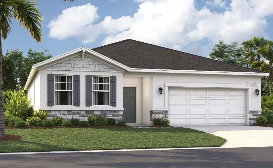 One or more photo(s) has been virtually staged. Under Construction. Located in the heart of Eustis and a short drive from downtown Mount Dora, Hidden Cove offers easy access to a variety of shopping, dining, and entertainment options. This quiet, secluded neighborhood is surrounded by the stunning beauty of multiple lakes, including Lake Eustis, the centerpiece of the Harris Chain of Lakes, and West Crooked Lake, right in your backyard. With numerous parks and golf courses nearby, you'll never run out of outdoor recreational opportunities. At Hidden Cove, enjoy the perfect balance of living in a private neighborhood near tranquil lakes, quaint town centers, and many local attractions. The Webber is a spacious 2,210 square feet single-story home featuring four bedrooms, 2 full bathrooms and a guest suite. The kitchen overlooks the dining and living room, while the outdoor lanai off the family room provides plenty of natural light throughout the main living area. Tucked away in the front of the home is second bedroom with an ensuite bathroom - perfect for guests. With a spacious primary suite located in the rear of the home and three additional bedrooms, the Webber is the perfect new home for all buyers alike.