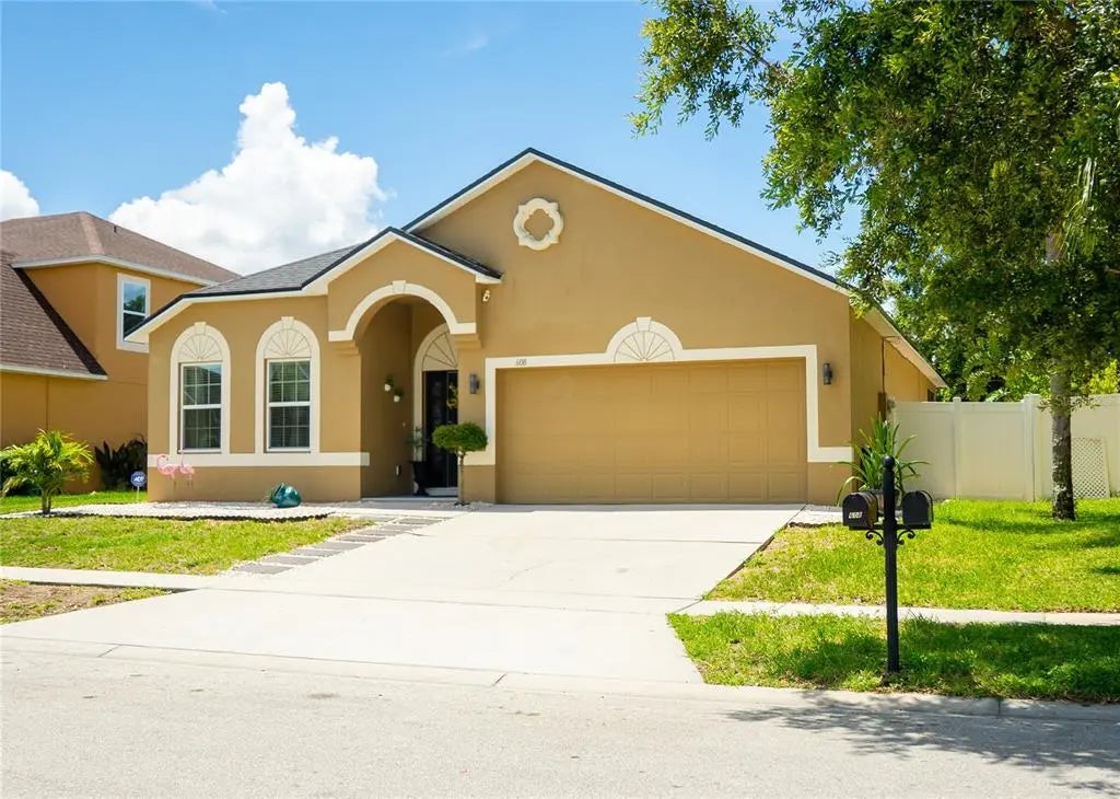 Welcome to this stunning 3-bedroom, 2-bathroom home with 1,634 sq. ft. of luxurious living space! Built in 2014, this beautifully maintained home features a spacious, open floor plan filled with high-end upgrades that enhance both comfort and style. The living room features elegant ceiling fascia with a beautiful ceiling fan with lighting, creating a soft, ambient glow and a sleek, modern aesthetic. Gorgeous new vinyl flooring (installed in 2023) flows throughout the main living areas, while a replaced carpet (installed in 2023) is in all bedrooms for added warmth and comfort. The gourmet kitchen is a showstopper, boasting stainless steel appliances, a large island with quartz countertops (Installed in 2020), perfect for cooking and entertaining guests. Enjoy Florida living at its finest with a covered and screened-in lanai, ideal for outdoor relaxing and entertaining. FULLY FENCED FOR PRIVACY. *** The pendant lights in the kitchen are for decorative purposes only. The patio shed does not convey and will be removed before closing***