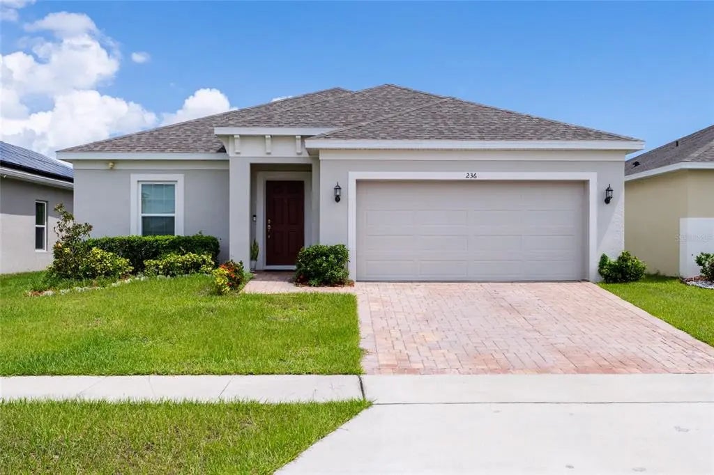 The practically new Berkshire model, a 3-bedroom, 2-bathroom (1,770 sq ft), offers elegant, low-maintenance living. The formal dining room is separate from the living room and integrates with a spacious family room (with ceramic tile flooring) and a chef-ready kitchen with 42-inch wood cabinetry, solid surface countertops, quartz tile, and stainless steel appliances. 18-inch tile covers the main living areas; plush carpet warms the divided bedrooms. The master suite features raised dual vanities (quartz tile) and a Kohler digital dual-head shower behind frameless glass. Water treatment for the entire house, energy-efficient, low-e windows, smart irrigation, a brick paver entryway, and a covered lanai add everyday convenience. Orchid Terrace keeps HOA dues to a minimum while offering a resort-style pool, dog park, playground, and walking trails. Ideally located for commuters: 10 minutes from I-4 and Posner Park shopping, and 25 minutes from Walt Disney World. USDA/FHA/VA applications are accepted. Turnkey, immaculate, and at an incredible price, fully furnished. Schedule your visit before someone else snatches it up!
