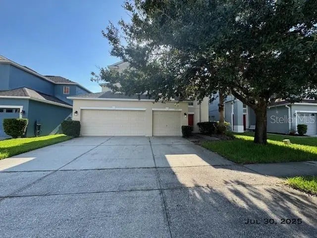 This 5-bedrooms, 3-bathrooms, 3-car garage home is in the gated community of Avalon Lakes. It's conveniently located near shopping and makes excellent use of space, boasting a formal living and dining area, a spacious family room adjacent to the eat-in kitchen, and an upstairs master suite along with a large loft/bonus room. There's also a separate laundry room and a covered porch situated on a conservation lot. With 2,673 sq ft of air-conditioned living space and a total of 3,593 sq ft, the home has carpeted bedrooms, tiled wet areas, stunning wood-look LVT flooring in all living spaces, and ceiling fans throughout. The community offers a center with a pool, sports courts, and a playground.