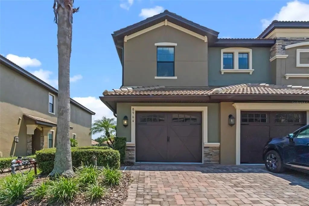 One or more photo(s) has been virtually staged. Welcome to this beautifully renovated 2 bedroom, 2 bathroom townhome with a 1 car garage, offering a spacious open layout and sleek wood look tile floors throughout. The kitchen features granite countertops, stainless steel appliances, and a breakfast bar, perfect for casual dining and entertaining. A dedicated laundry area with a custom industrial barn door, top of the line light fixtures, and thoughtful upgrades add modern charm to the home. The primary suite features a custom designed closet, ensuite bath with soaking tub and separate shower, and private access to a screened patio overlooking the tenth hole of the golf course, while the second bedroom also includes a custom-built closet for organized storage. Enjoy direct access to the golf cart path and a grassy backyard perfect for pets, along with the ability to relax on your lanai while watching golfers pass by. This home also includes a new 2024 AC unit for peace of mind. Located in a private, gated resort-style community, residents enjoy access to world-class amenities including the Oasis Club with a 14,000 sq. ft. clubhouse, movie theater, fitness center, game room, tiki bar, lazy river, and cabanas, as well as the newly opened Retreat Club with a waterpark and restaurant/bar. Additional perks include washer and dryer, lawn care, and basic internet and cable all included with the HOA, making this home the perfect blend of comfort, convenience, and resort style living.