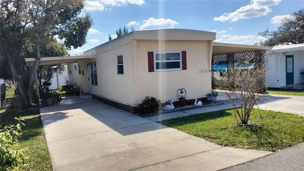 Motivated Seller, Flash Sale! 2-bedroom, 2 bath single wide home with an additional living space, storage and covered patio/carport. In the front of the home is a primary suite. In the back of the home is the other bathroom and another bedroom that can easily serve as a guest room or cozy office, providing versatility to suit your lifestyle. Off the hallway, you can step down into another spacious living area with a laundry area. There is also an additional storage shed at the back of the property. This home has so many opportunities and is very spacious. Come and enjoy the welcoming 55+ community, leisurely strolls along the well-maintained gardens outside where the vibe shines through! Take a dip in the community pool or enjoy the clubhouse, with social events and friendly neighbors. Welcome to a vibrant, active community.