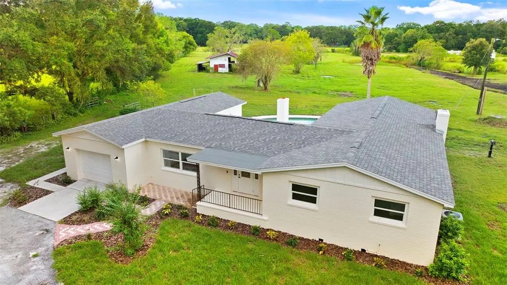 Completely remodeled 4 bedroom 2 bath pool home with over 8.5 acres. This move in ready home features a new roof, new windows, new kitchen and 2 new bathrooms.