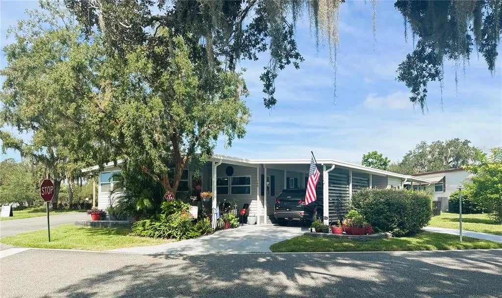 Location, Location, Location Directly across the street from the clubhouse, pool, fitness center, spa, and shuffleboard courts, this beautifully updated home offers one of the best locations in the sought-after Hawthorne at Leesburg community. Meticulously maintained with extensive upgrades from 2023–2025, this property combines comfort, energy efficiency, and modern style at an exceptional value. Inside, the home features luxury vinyl plank flooring with ¾ inch subflooring throughout, crown molding, knockdown ceilings, and a full interior repaint. Both bathrooms have been updated with new sinks, mirrors, faucets, and lighting. The master en-suite includes a new toilet with bidet and a brand-new shower completed in 2025. Other recent upgrades include a granite sink, tankless water heater, Levolor blinds, and updated doors with fresh paint, hardware, and lever handles for easy access. The kitchen and laundry areas have been fully modernized with a Whirlpool three-door refrigerator with ice and water, Whirlpool convection range and microwave, LG high-efficiency washer/dryer stack unit, new garbage disposal, and new lighting. Additional comfort features include four Hunter remote-control ceiling fans, a portable A/C unit for the Florida Room, a WiFi thermostat, and a heat pump serviced twice a year with a new compressor installed in 2024. The exterior of the home is just as impressive. Recent updates include energy-efficient double-pane windows throughout (including the Florida Room), new vinyl siding, painted trim and foundation, custom shutters, and a new railing for the steps. The driveway and patio have been freshly painted, and landscaping has been enhanced with stack stone, rock flower beds, and a sprinkler system with a new controller in 2025. Outdoor living spaces include a concrete patio with covered golf cart parking, wrought iron patio fencing, a new mailbox, a backyard storage shed with patio cover, and a brand-new four-post carport and front patio cover installed in 2025 to current Lake County code. The home has also been carefully maintained for peace of mind. A four-point inspection was completed at purchase, roof inspections have been ongoing since 2022, tie-downs were inspected in 2023 (with upgrades pending through state funding), and the vapor barrier was repaired and inspected in 2023. Hawthorne at Leesburg is a premier 55+ community where residents enjoy an active and affordable lifestyle for just $346 a month. The monthly fee includes water, sewer, lawn care, and emergency services, along with access to resort-style amenities. Highlights include a heated pool, spa, fitness center, library, arts and crafts rooms, billiards, card rooms, and more than 100 planned activities and events. A private marina with over 120 slips provides direct access to Lake Harris, and secure RV and boat storage is also available. Safety and peace of mind are a priority with a 24/7 emergency system, on-site firefighter/EMTs, and in-home alarm buttons. The community also offers golf cart access, walking trails, and beautiful natural surroundings, all close to shopping, dining, golf, and medical facilities. This home combines modern upgrades, energy efficiency, and an unbeatable location at the heart of Hawthorne. Schedule your private showing today.