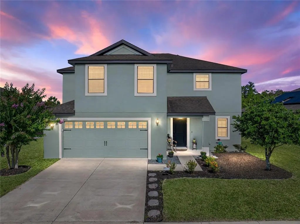 **Motivated Sellers**Sidewalk-lined streets, fresh landscaping, and a welcoming covered entryway set the tone for this beautifully maintained, 2017-built, 4 bedroom, 2.5 bath home in the amenity-rich community of The Villages at Bridgewater. Designed with comfortable living and easy gatherings in mind, this two-story home features a spacious layout, stylish finishes, and an expansive fenced backyard. Step inside to an easy-flowing, open-concept main living area where a 19x14 living room offers plush carpeting, a ceiling fan, and sliding glass doors that lead out to the covered patio. The flow continues seamlessly into the kitchen and dining area, where a gorgeous eat-in chef's kitchen is nicely equipped with rich wood cabinetry, granite countertops, a central island with breakfast bar seating, a walk-in pantry, and sleek black stainless steel appliances. Quick access to the 2-car garage makes unloading groceries a breeze, and a conveniently located half bath adds extra functionality on the main floor.