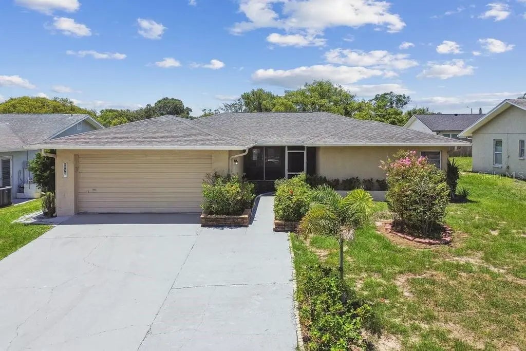 Under contract-accepting backup offers. PRICE IMPROVEMENT! Seller says let's make a deal! Now offering 10K in Seller Closing assistance!SAN CLEMENTE VILLAGE offering is a rare 3- bedroom home in the family area of Timber Oaks, which has no age restrictions! When you approach the home, you notice the lovely hibiscus lining the walkway, and the signature Florida Palm Tree. Stepping into this home, you are immediately impressed with the size of the living area. When stepping through the hallway to the right, you will find 2 bedrooms, and the 2nd bathroom. Going further down the hallway, you find the Primary bedroom retreat, ensuite with a step -in shower and with access to the Florida room by sliding glass doors. You will find the eat-in Kitchen with additional dining space and bonus room located to the left of the living room. The enormous, enclosed Florida Room is accessed by sliding glass doors from Dining area, Living room, and Primary bedroom. The back yard is enclosed by a newer vinyl fence for privacy, and a new HVAC system was installed in April 2025, and the roof was installed in March 2025, giving you many years of peace of mind and comfort. The garage offers abundant storage space. Both bathrooms have newer toilets. The Timber Oaks Community is a great neighborhood, with a Clubhouse, pool, dock, tennis, and so much more for an additional monthly fee. This home is ready for new owners, so make your appointment today!