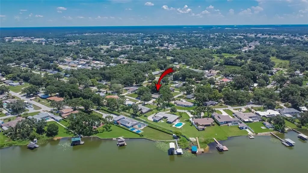 Welcome to this spacious and inviting home located on a picturesque, tree-lined corner lot directly across from the serene waters of Lake Gibson - a view you can enjoy from your front yard every day. With no HOA, this property offers freedom and flexibility in one of Lakeland's most peaceful, established neighborhoods, known for its quiet streets and friendly neighbors.. Step inside and discover a layout that surprises with its space and versatility. With two master suites, this home is ideal for multi-generational living or an in-law suite setup. The moment you enter, the home opens up into a large Great Room filled with natural light, featuring a striking stone-covered wood-burning fireplace - perfect for cozy evenings and adding a touch of auditory warmth and ambiance. The open-concept kitchen is a chef's delight, complete with stainless steel appliances, and a stylish tile backsplash. A breakfast bar create a welcoming space for casual meals or morning coffee. There's also a separate family room and living room, offering flexible space for entertaining or relaxing. All secondary bedrooms are at the opposite side of the home and sized well. One of these rooms has an en suite bathroom and all have walk in closets. Step outside to enjoy the sparkling pool and fully screened in patio, all set within a fenced backyard that's perfect for pets, kids, or simply lounging under the Florida sun. The property includes plenty of parking, a chicken coop, and raised garden beds for those who love to grow their own produce or enjoy a bit of backyard farming. Mature shade trees enhance the home's curb appeal and provide natural cooling, while the unique architectural styles throughout the neighborhood add character and charm to the surroundings. Conveniently located near the north edge of Lakeland, this home is close to everything: Walmart, two Publix stores, Sam's Club, Lowe's, Home Depot, Winn-Dixie, Aldi, Lakeland Square Mall, Cinemark theater, Watson Clinic Main, and a wide variety of dining options - all within five miles. Plus, it's a great commuting location, with easy access to Tampa, Orlando, and just 30 minutes to Disney's Ticket and Transportation Center. This home feels larger and more open than it appears from the outside, and offers the perfect blend of comfort, functionality, and location. Come see, feel, and fall in love with this Lake Gibson gem today!